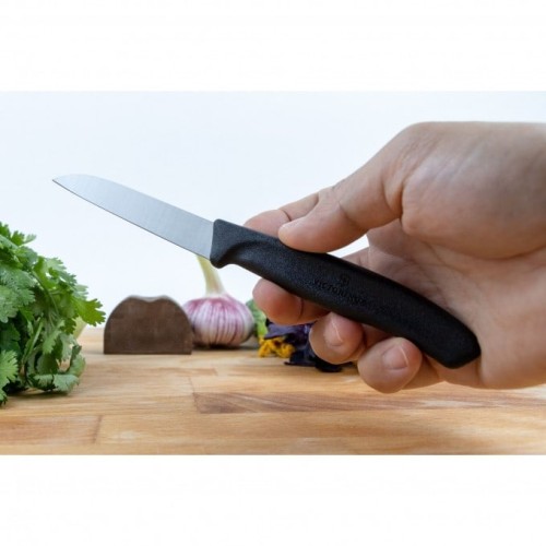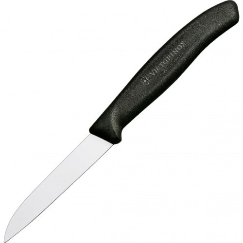 Швейцарский кухонный нож Victorinox 6.7403 для овощей и фруктов длиной 8 см и пластиковой рукояткой черного цвета дает свободу вашей фантазии при нарезке нежных фруктов и спелых овощей без потери их внешнего вида. Благодаря продуманной форме лезвия, удобной рукоятке и гарантированной надежности такой нож обладает множеством достоинств при работе на кухне.