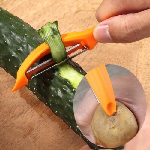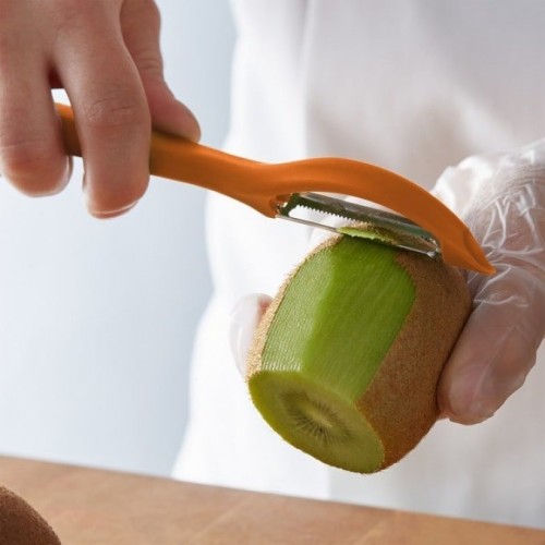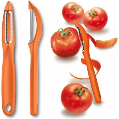 Уникальная конструкция с плавающим нержавеющим лезвием овощечистки позволяет использовать ее для снятия кожи с томатов, любых овощей или фруктов, моркови, яблок, баклажанов, кабачков и т.п.