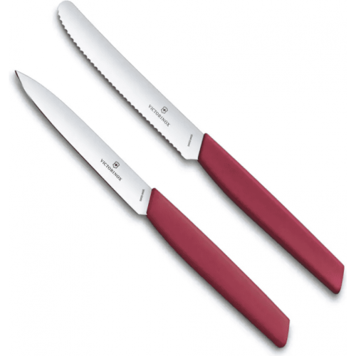Прочный дуэт для решения любых кухонных задач. В набор швейцарских современных ножей для очистки овощей из 2 предметов входит нож для томатов для фруктов и овощей с твердой кожицей и мягкой сердцевиной, с ультраострой волнистой кромкой и закругленным кончиком. Острый нож для очистки овощей с прямым краем и заостренным кончиком позволяет легко нарезать овощи, фрукты и другие продукты. Каждая деталь имеет синтетическую ручку элегантного современного цвета, которую можно мыть в посудомоечной машине.