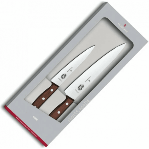 Ножи Victorinox изготавливаются из первоклассной хромомолибденовой нержавеющей стали, с высокой прочностью и превосходной режущей способностью. Эргономичные рукоятки сделаны из палисандрового (красного) дерева. Обработанные особым образом, не боящиеся влаги красивые кухонные ножи Victorinox с деревянными рукоятками, при аккуратном использовании прослужат своему владельцу долгие годы.