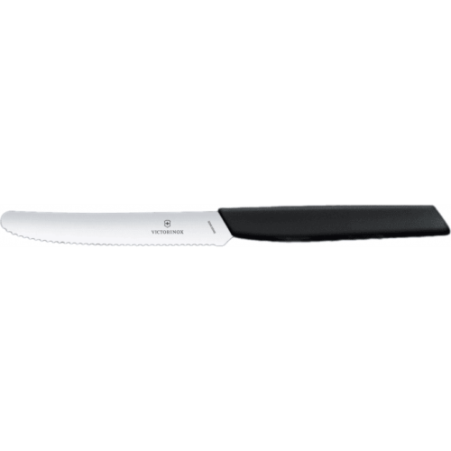 Идеально подходит для фруктов и овощей с твердой кожицей и мягкой сердцевиной. Набор томатных и столовых ножей швейцарского производства с волнистыми краями С ультраострым, износостойкими лезвиями из нержавеющей стали и современными синтетическими ручками.