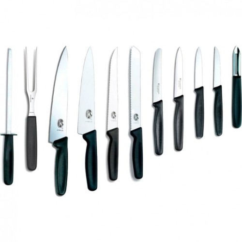 Набор швейцарских кухонных ножей Victorinox 5.1153.11 состоит из 11-ти предметов предназначеных для решения различных кулинарных задач. Многие домохозяйки предпочитают купить сразу набор ножей на кухню чем каждый нож по отдельности, при этом это выгодней с финансовой точки зрения.