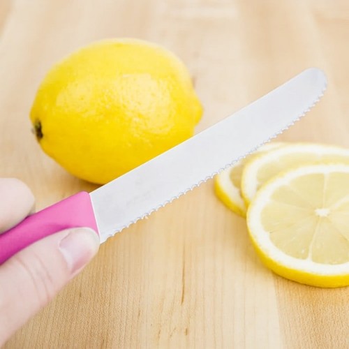 Швейцарский кухонный нож Victorinox 6.7836.L115 для масла длиной 11 см и с розовой пластиковой ручкой поможет создавать кулинарные шедевры, красиво оформлять стол для трапез и просто получать удовольствие от готовки. Производитель включил в нож для резки масла множество достоинств в виде функциональности, тщательно продуманной формы рукояти и лезвия.