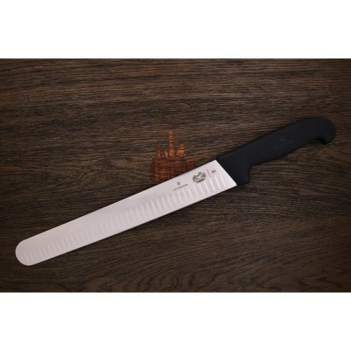 Нож Victorinox для тонкой нарезки слайсер, рифлёное лезвие с с закруглённым кончиком 30 см, черный.