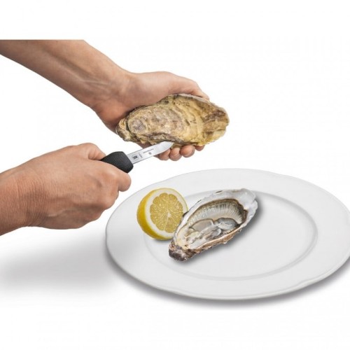 Специальный нож для открывания живых устриц Victorinox 7.6394 имеет слегка изогнутое заточенное с одной стороны лезвие, которое достаточно легко вставляется в сочленение створок. Рукоять ножа выполнена из ударопрочного синтетического материала с нескользящей поверхностью и широкой задней частью, что позволяет крепко и безопасно держать нож при открывании моллюска.