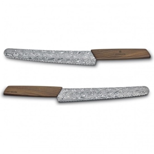 Профессионально спроектированный для обеспечения безупречной точности, этот нож с легкостью нарезает любые хлебобулочные и кондитерские изделия. Живой узор на лезвии из дамасской стали, в сочетании с богатой текстурой рукоятки из орехового дерева, делает этот нож поистине уникальным и современным предметом коллекционирования. Новый коллекционный шедевр от компании Victorinox станет отличным подарком для профессионального кондитера и поклонников легендарного швейцарского бренда.