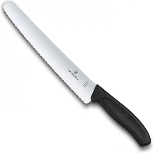 Идеальный швейцарский кухонный нож для нарезки тортов, пирожных и любых других хлебобулочных изделий. Лезвие ножа имеет закруглённый кончик для украшения тортов, что также позволяет использовать нож как лопатку.