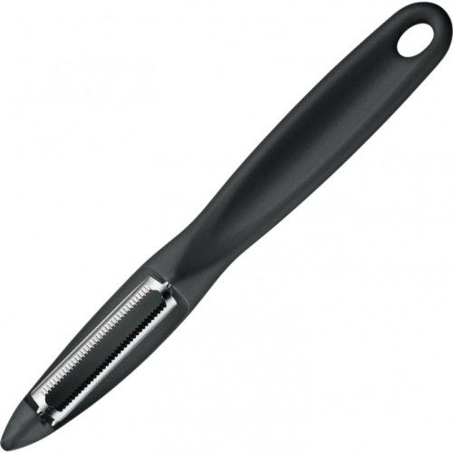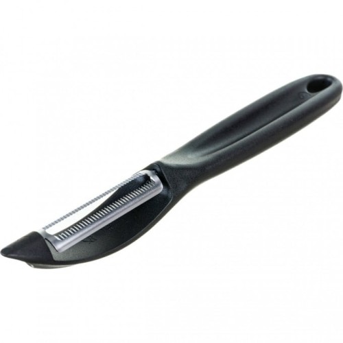 Овощечистку одинаково удобно могут использовать как правши, так и левши, рабочие движения возможно осуществлять в двух направлениях, от себя и к себе. На рукоятке есть небольшое отверстие для удобного размещения инструмента в интерьере.