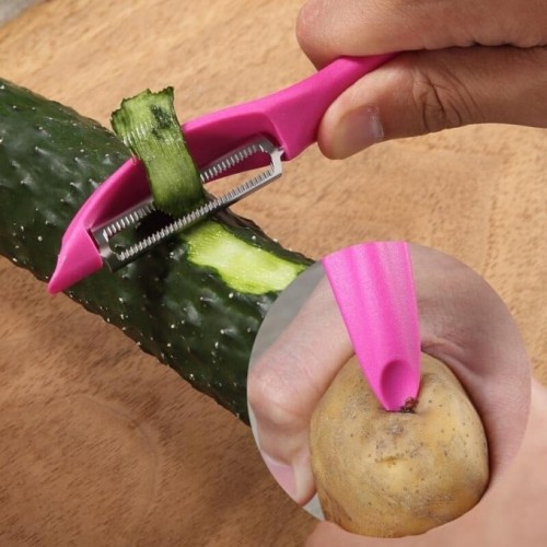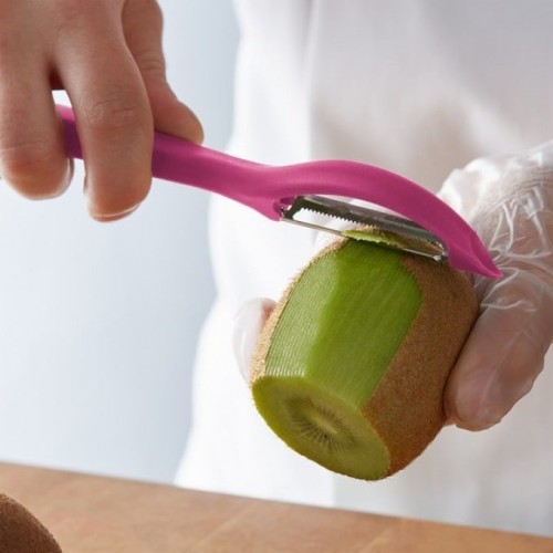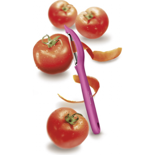 Уникальная конструкция с плавающим нержавеющим лезвием овощечистки позволяет использовать ее для снятия кожи с томатов, любых овощей или фруктов, моркови, яблок, баклажанов, кабачков и т.п.