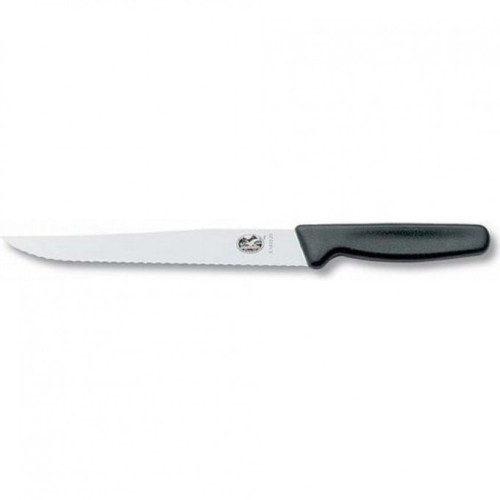 Швейцарский кухонный жиловочный нож Victorinox 5.1833.20 длиной 20 см и с пластиковой рукояткой черного цвета сделает процесс приготовления мясных блюд особенно приятным. Благодаря ему разделка мясных туш, нарезание мяса на порционные кусочки нужного размера и удаление пленок и жил из мяса выполняется особенно легко и быстро.
