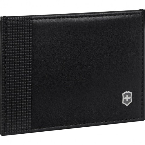 Victorinox Travel ALTIUS ALOX Slim Card Case (Black) – тонкий кожаный картхолдер на 3 карты с RFID-защитой. Эстетичный черный дизайн с металлическим шильдом-логотипом Victorinox. Детализация подчеркнута четкой эстетикой рифленых алюминиевых накладок карманных ножей из коллекции Alox.