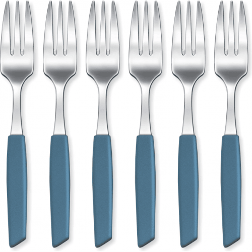 НАБОР ДЕСЕРТНЫХ ВИЛОК SWISS MODERN Серия Swiss Modern Extension привнесёт сдержанную элегантность на вашу кухню. Этот изысканный ассортимент столовых приборов изготовлен из прочной нержавеющей стали, пригодной для мытья в посудомоечной машине. Новые яркие тона и минималистичный чёрный цвет ручек с противоскользящим покрытием придают коллекции современную модную эстетику. Лезвия ножей сверхострые и предназначены для легкого нарезания, в то время как остальная часть ассортимента идеально подходит для непринужденной трапезы, которую можно разделить с семьей и друзьями.