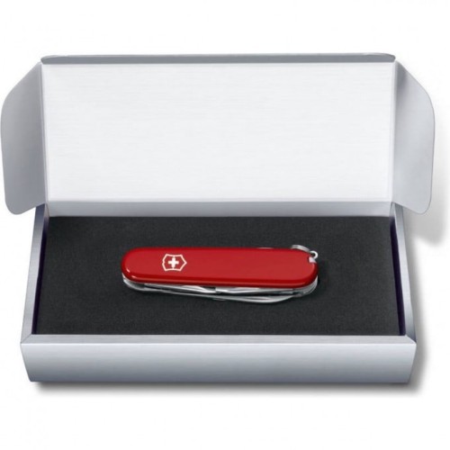 Фирменный логотип компании Victorinox украшающий крышку, даст возможность заранее порадоваться ее содержимому.