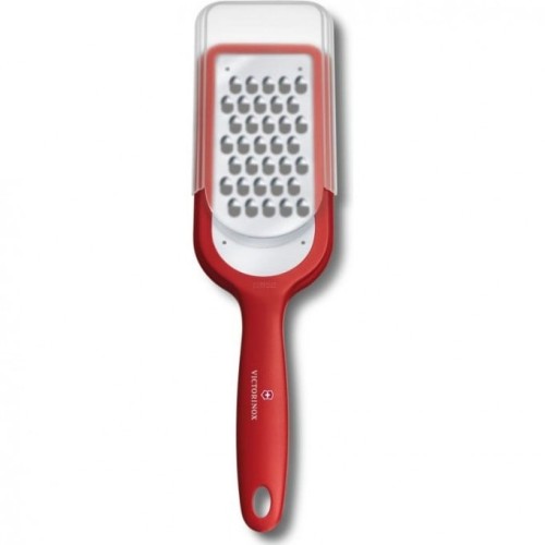 Крупная тёрка от легендарного швейцарского бренда VICTORINOX идеально подходит для измельчения овощей и фруктов. Противоскользящая рукоять с дополнительными выемками повышает удобство использования тёрки. Модель имеет защиту режущего элемента, что обеспечивает её безопасное хранение. Пригодна для использования в посудомоечной машине.