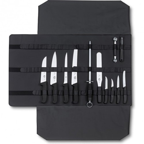 Удобная сумка для хранения и переноски ножей изготовлена из полиэстера. Внутри Вы можете удобно разместить ножи и аксессуары, фиксируя их положение липучкой.