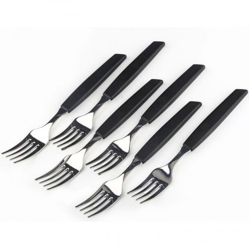 НАБОР СТОЛОВЫХ ВИЛОК SWISS MODERN Серия Swiss Modern Extension привнесёт сдержанную элегантность на вашу кухню. Этот изысканный ассортимент столовых приборов изготовлен из прочной нержавеющей стали, пригодной для мытья в посудомоечной машине. Новые яркие тона и минималистичный чёрный цвет ручек с противоскользящим покрытием придают коллекции современную модную эстетику. Лезвия ножей сверхострые и предназначены для легкого нарезания, в то время как остальная часть ассортимента идеально подходит для непринужденной трапезы, которую можно разделить с семьей и друзьями.