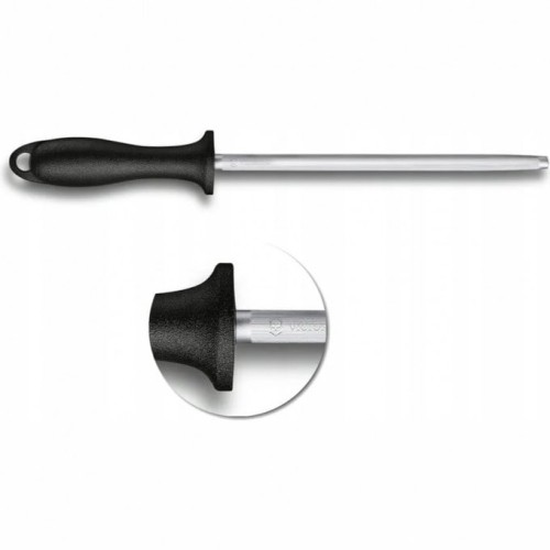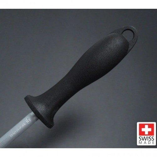 Сохраняйте свои ножи остро заточенными с помощью нашего инструмента для заточки ножей. Мусат Victorinox сделан из исключительно прочной хромированной хонинговальной стали, оснащён эргономичной рукоятью и имеет круглую форму со средне-мелкой насечкой (medium-fine). Мусат отличается лёгкостью в использовании, прочностью и долговечностью. Износостойкая поверхность стержня в сочетании с высоким качеством исполнения гарантирует непревзойдённо долгий срок службы.