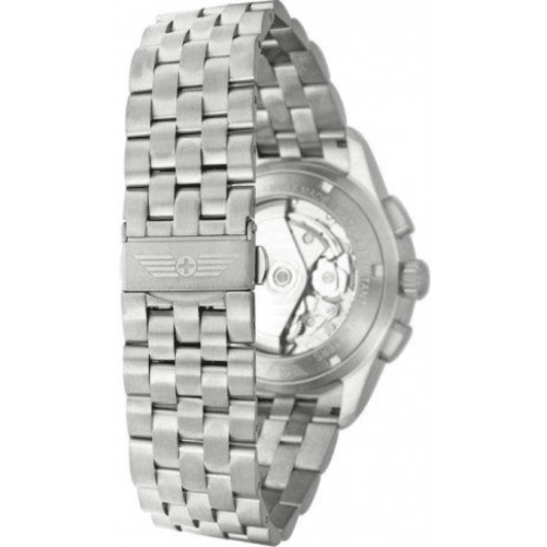 Смелый в своей простоте и современный в своем мировоззрении. Этот надежный механический хронограф Ваш непревзойденный инструмент высокого полета. AirBoss Mechanical Chronograph. Часы-хронограф с секундомером до 30мин, точность 1/10с. 12-ти и 24-х часовой формат времени. Запас хода 38 часов. Завинчивающаяся прозрачная задняя крышка. Браслет с раскладывающейся застежкой