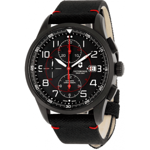 Стильный швейцарский аксессуар поможет покорить все четыре стихии. AirBoss Mechanical Chronograph Black Edition. Часы-хронограф с секундомером. В механизме 25 камней, частота 28800 полуколебаний в час. 12-ти и 24-х часовой формат времени. Секундная стрелка вынесена на отдельный циферблат. Завинчивающаяся прозрачная задняя крышка. Ремешок с раскладывающейся застежкой
