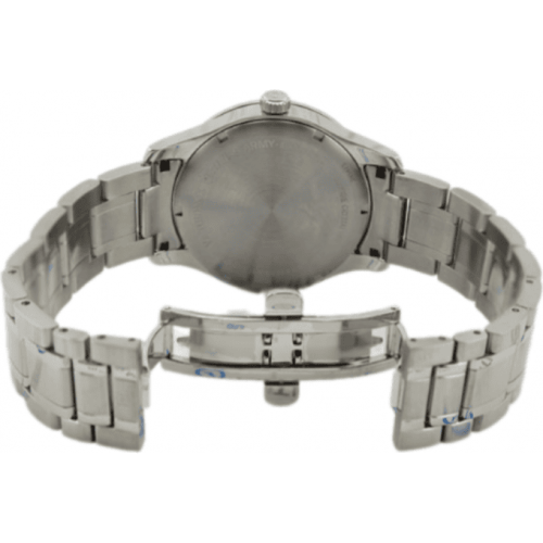 Кварцевый механизм Ronda 515. Стальной корпус диаметром 40мм, люминесцентные стрелки, накладные цифры, индикация даты, Сапфировое стекло с тройным антибликовым покрытием, водоустойчивость до 100м, Стальной браслет с двойной раскладывающейся застежкой.