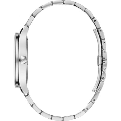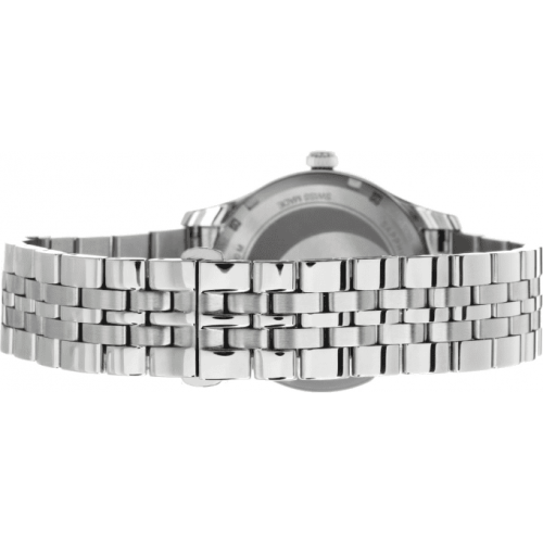 В случае, если заряд элемента питания ослабевает, секундная стрелка начинает двигаться скачками (через деления). Вплоть до окончания срока службы элемента питания часы продолжают работать и показывать точное время. Накладные индексы. Завинчивающаяся задняя крышка украшена выгравированным изображением Луны.