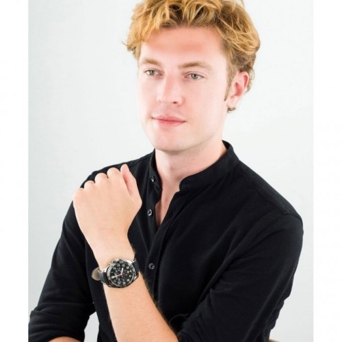 - Черный кожаный ремешок шириной 21 мм, стандартная застежка.