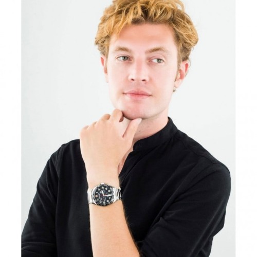 - Стальной браслет шириной 21 мм, раскладывающаяся застежка.