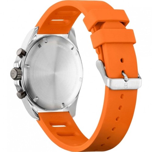 - Оранжевый резиновый ремешок шириной 21 мм, стандартная застежка.