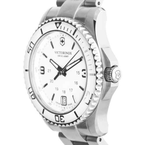 Исключительное швейцарское качество. Эти часы будут вашим идеальным помощником в контроле над каждой секундой. Maverick Small. 12-ти и 24-х часовой формат времени. Безель вращается в одном направлении. Функция индикации заряда (EOL). Завинчивающаяся задняя крышка. Заводная головка с защитой. Браслет с раскладывающейся застежкой. Застежка с системой блокировки и увеличением длины.