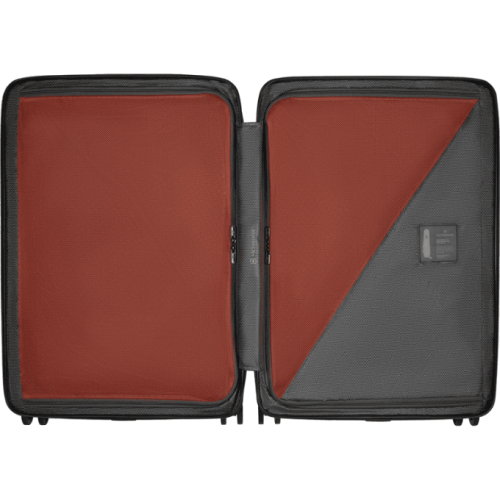 - Интеллектуальная система открывания обеспечивает легкую упаковку. Чемодан раскрывается на 2 части, каждая из которых имеет перегородку на молнии.