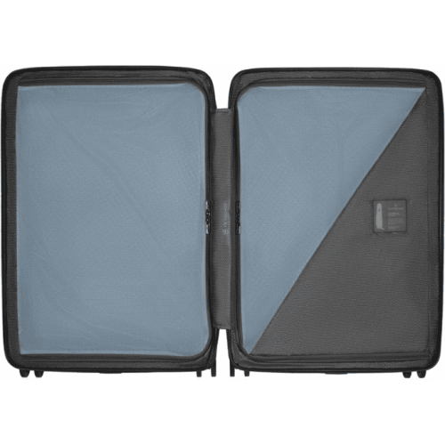 • Интеллектуальная система открывания обеспечивает легкую упаковку. Чемодан раскрывается на 2 части, каждая из которых имеет перегородку на молнии.
