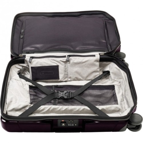 - X-образные утягивающие ремни обеспечивают сохранность сложенных вещей в то время, как два сетчатых кармана на молнии гарантируют размещение максимума аксессуаров между рёбер телескопической ручки