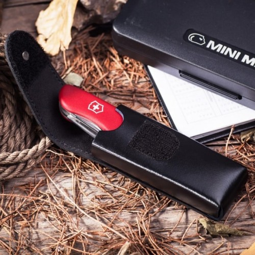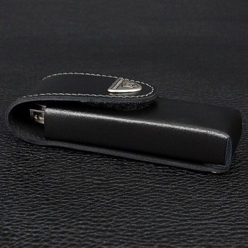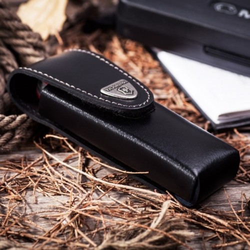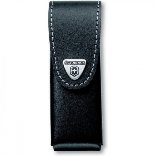 Качественный чехол из натуральной кожи чёрного цвета. Крепится на ремень, закрывается на липучку. Чехол предназначен для складных ножей Victorinox длинной 111 мм и толщиной от 4-х до 6-ти уровней.