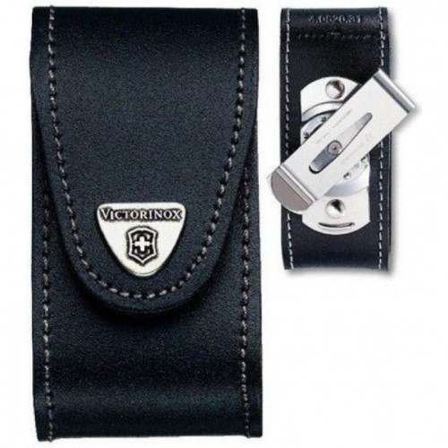 Victorinox 4.0520.32 - чехол из натуральной кожи чёрного цвета, предназначен для офицерских складных ножей (91 мм. в сложенном виде) и ножей из коллекции Delemont (85 мм. в сложенном виде) толщиной от 2-х до 5-ти уровней.