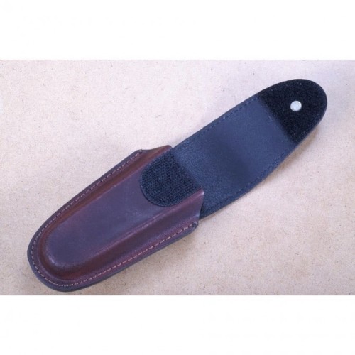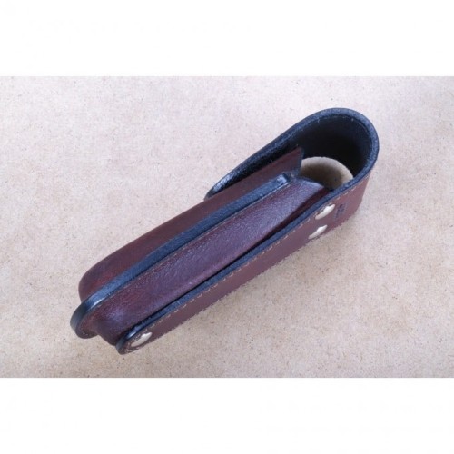 Стильный чехол из прочной коричневой кожи для солдатских складных ножей Victorinox 111 мм., толщиной от 4-х до 6-ти уровней. Чехол имеет петлю для крепления на ремень, застёгивается при помощи липучки.