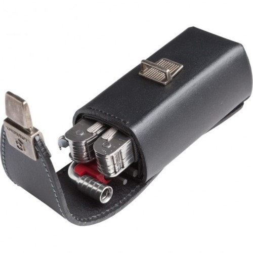 Кожаный чехол с пружинной металлической защёлкой и петлёй для ношения на ремне. Предназначен для мультитулов Victorinox SwissTool Plus 3.0338 и 3.0339