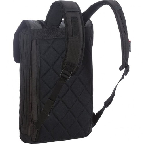 Снаружи присутствует 3 кармана: один на застежке и два скрытых, в которых можно хранить предметы первой необходимости. Внутрення часть хорошо организована и включает место для цифровых устройств диагональю не больше 15 дюймов, различных аксессуаров и сетчатый карман. Широкие плечевые ремни регулируются и имеют специальные петли для очков.