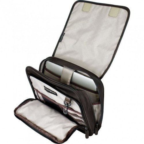 • Передняя панель на молнии имеет карман из воздухопроницаемой сетки AirMesh для хранения электронных аксессуаров, который помогает увеличить время работы аккумулятора, карман из микросетчатого материала для документов, удостоверяющих личность, отделения для карточек, держатели для ручек и карабин для ключей