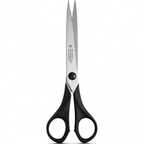 Лезвия ножниц изготовлены из высококачественной нержавеющей стали, рукоятки из нескользящего ударопрочного пластика. Винтом можно регулировать сопротивление пары. Выкрутив винт полностью, ножницы можно разобрать для прочистки или заточки (для быстрой и качественной заточки рекомендуется использовать оригинальные точилки VICTORINOX