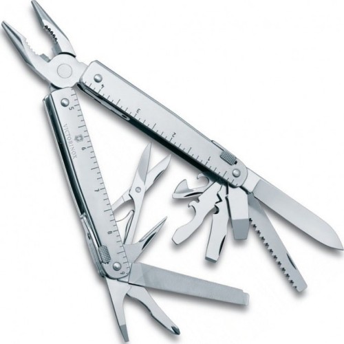 | Инструменты | С плоскогубцами; С отверткой; С фомкой; С консервным ножом; С открывалкой для бутылок; С инструментом для сгибания проволоки; С лезвием; С ножницами; С пилой по дереву; С пилой по металлу; С шилом; С крестовой отверткой; Со стамеской; С инструментом для снятия изоляции; С линейкой |