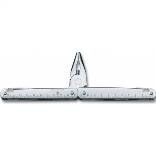 Набор функций и инструментов мультитула Victorinox SwissTool 3.0327.L1: 1. Плоскогубцы с: 2. - Кусачками для тонкой и мягкой проволоки твёрдостью до 40 HRC 3. - Кусачками для твёрдой проволоки 4. Отвёртка 2 мм 5. Отвёртка 7,5 мм с: 6. - Прочной фомкой 7. Консервный нож с: 8. - Отвёрткой 3 мм 9. Открывалка для бутылок с: 10. - Отвёрткой 5 мм 11. - Инструментом для сгибания проволоки 12. Большое лезвие 13. Ножницы 14. Пила по металлу с: 15. - Напильником по металлу 16. Пила по дереву 17. Шило, кернер 18. Крестовая отвёртка ½ 19. Стамеска с: 20. - Инструментом для снятия изоляции 21. - Проволочным скребком 22. Обжимные щипцы 23. Линейка (230 мм) 24. Линейка (9 дюймов) 25. Отверстие для шнурка или клипсы для переноски 26. Гнездо для штопора или клипсы для переноски - Фиксирующий механизм и индивидуальные пружины на каждом элементе инструмента